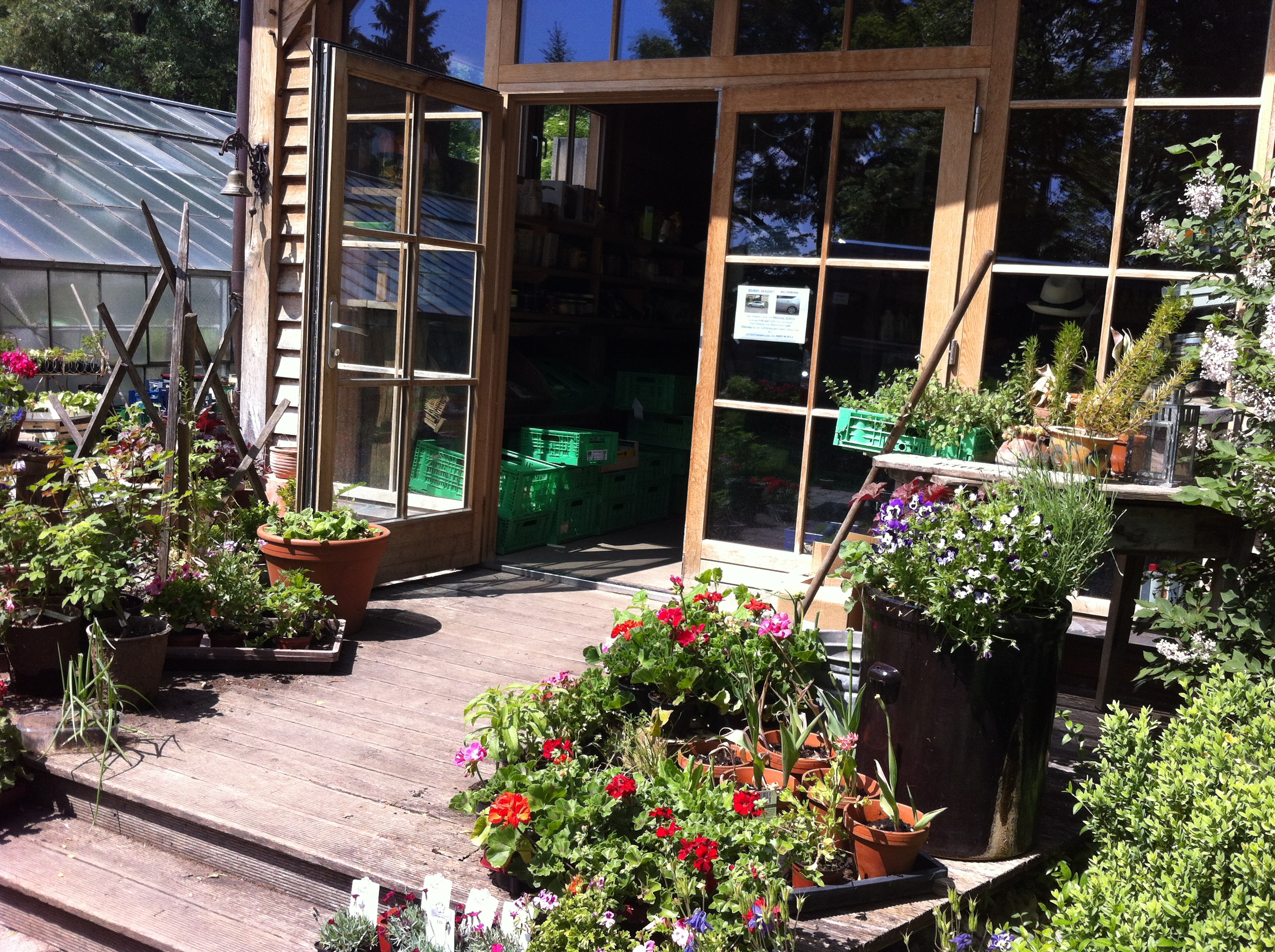 Dritter Tag: Irmi muss auf den Markt. Ich soll die Pflanzen im Gewächshaus gießen und nebenbei den kleinen Bio-Gemüseladen hüten. Der Schlauch hat eine große Handbrause und beides ist schwer zu jonglieren, wenn man aufpassen muss, mit dem Schlauch keine Pflanze zu erschlagen, keinen Topf umzuschmeißen oder hineinzutreten und Tomaten beispielsweise kein Wasser von oben mögen. Ich sehe aus wie ein Maulwurf, der sich im Regen einen neuen Tunnel gegraben hat, als die erste Kundin kommt. Der Joghurt ist nicht ausgezeichnet, was kostet der nur? Die Kundin winkt ab und sagt: „Ach, ich komme morgen eh nochmal vorbei und sage der Irmi, dass ich einen Joghurt hatte.“ Gut, so machen wir es. Als sie geht, kommt ein kleiner Vogel durch die Hintertür in den Laden geflogen und setzt sich aufs Regal. Ach, wie wohltuend ein Arbeitsplatz sein kann, denke ich.