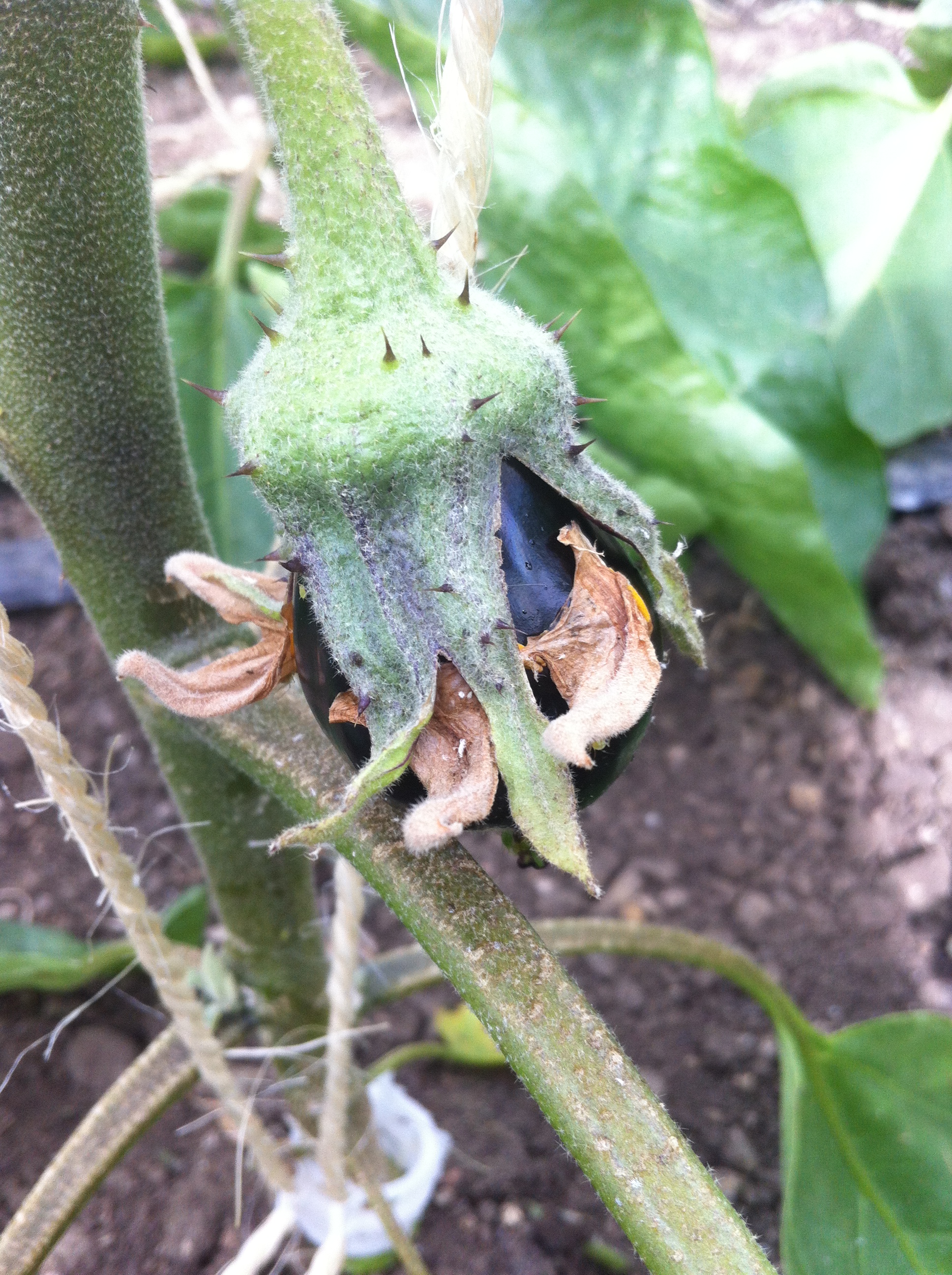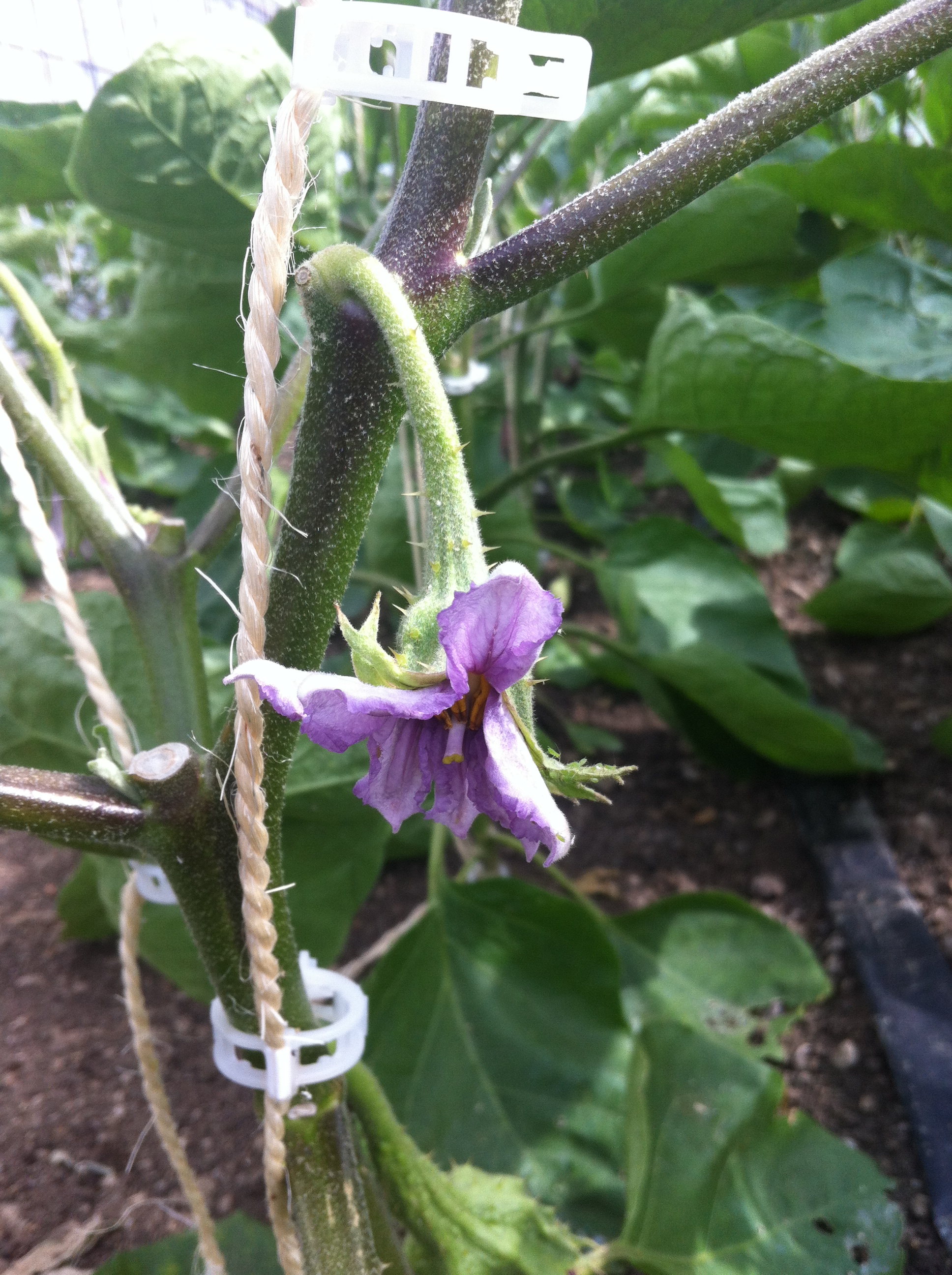 Ich muss gestehen, ich sehe die erste lebende & wachsende Auberginenpflanze meines Lebens. Die Anmut verzaubert mich so, dass ich gar nicht mehr aufhören kann mit dem Fotografieren. Ich verpasse fast Irmis Einkauf von Nachschub an jungen Setzlingen.