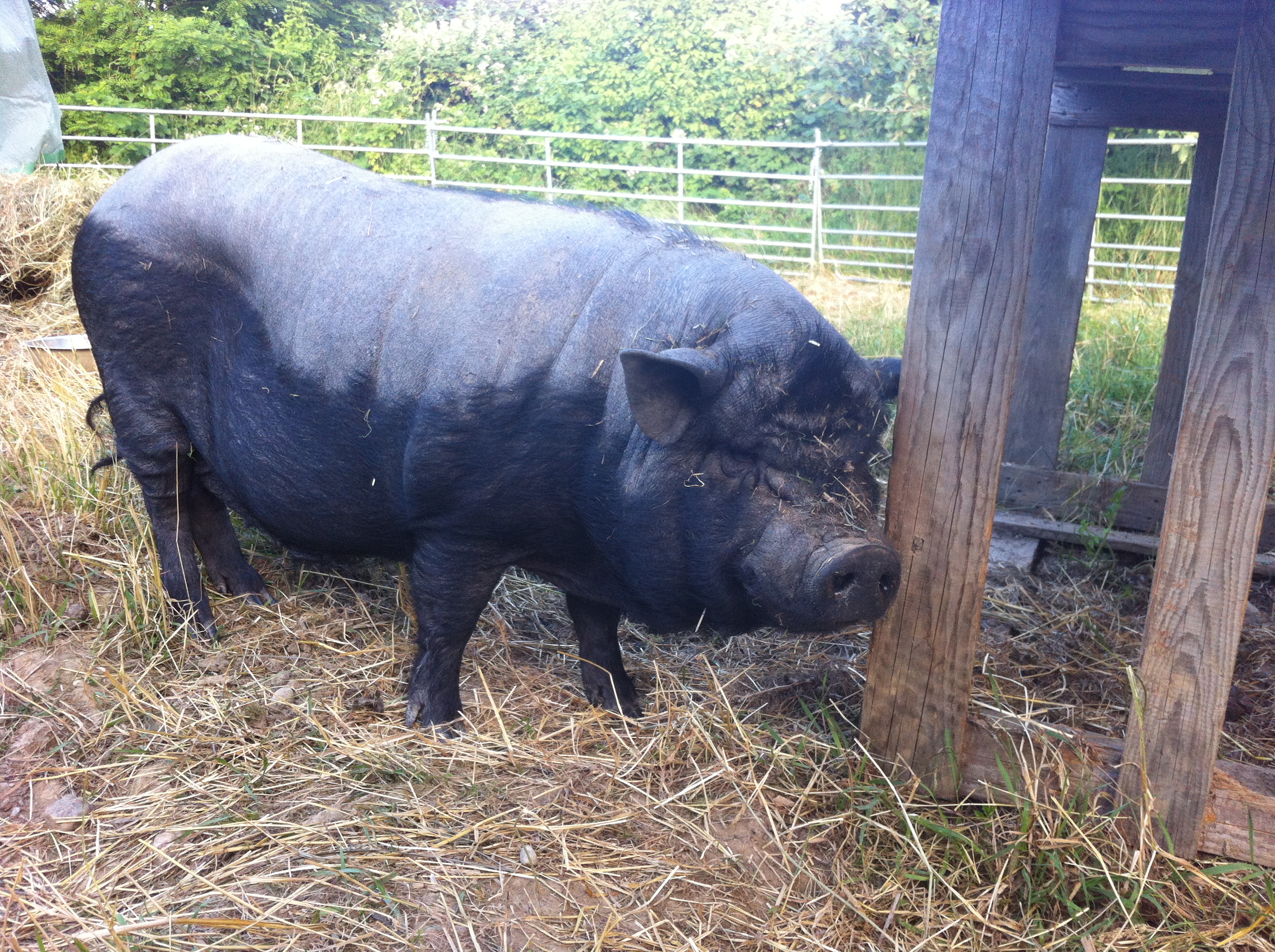 Oh je, schon fast vorbei, diese wunderbare Exkursion in eine Zeit vor meiner Zeit, als man noch genau wusste, was in den Sachen ist, die man sich ins Gesicht schmiert (kein Erdöl!) oder auf dem Teller serviert (keine E irgendwas!) – und als man noch viele nette Gefährten mit Federn, Borsten und Fell um sich hatte. Eine kleine Eierkunde klärt mich auf, wie man am Dotter erkennt, was das Huhn gefressen hat. Achtung Hellgelb: Legemehl = Fischmehl = Gentechnik. Wer weiß schon noch, dass Hühner kuscheln können? Dass die Ziege der armen Leute Kuh war? Dass es eine schwarze Urbiene gibt? Dass auch manche Nutztiere vom Aussterben bedroht sind?