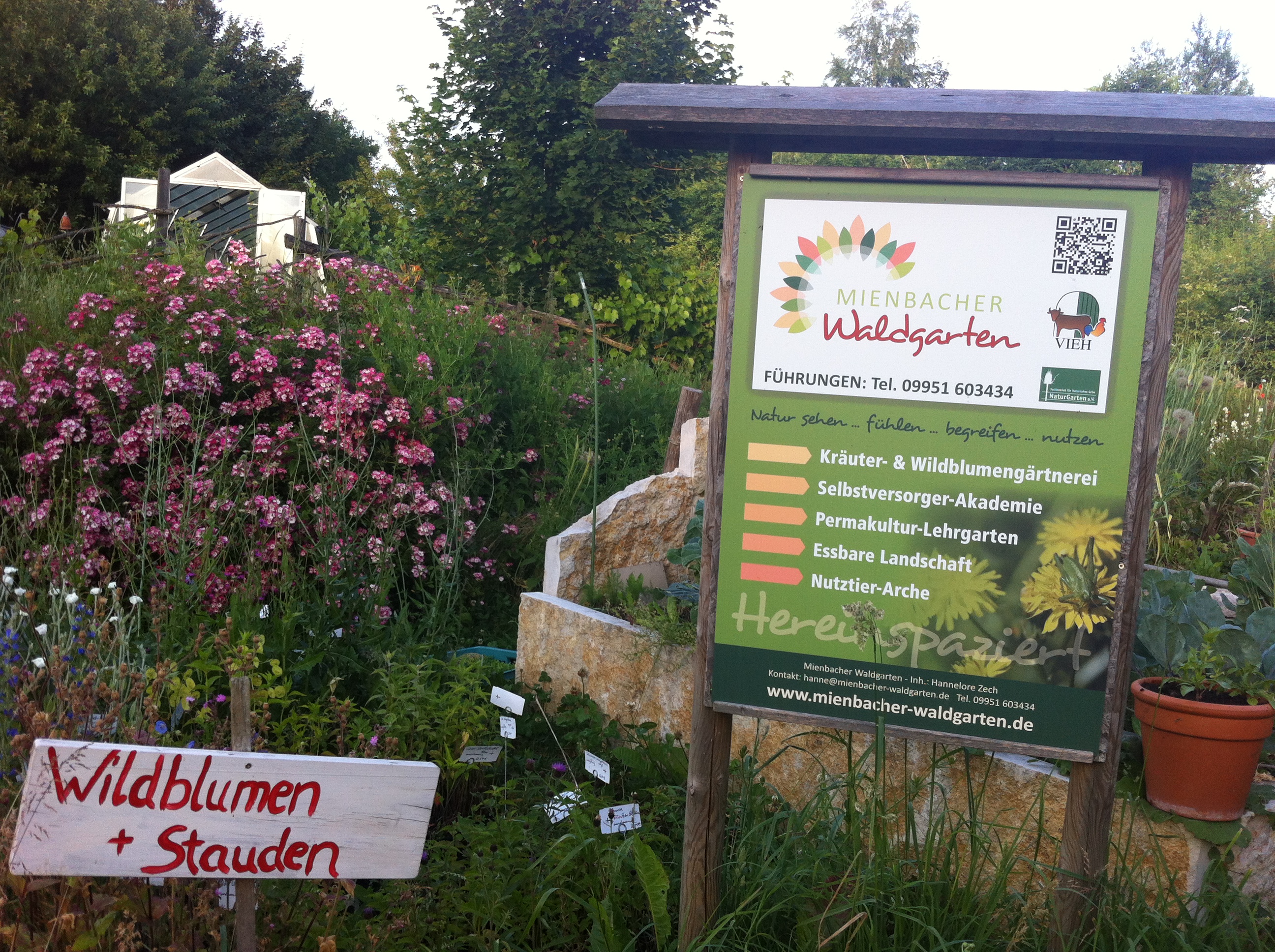Ich war eine Woche in Niederbayern im Mienbacher Waldgarten bei Selbstversorgerin Hannelore Zech in der Schule. Beim Stichwort „Waldgarten“ dachte ich an Kälte und Düsterniss, vermatschte Pfade auf dem langen Weg zur Toilette, ein alternatives „Hejho, sei doch nicht so spießig“ und natürlich, oh Gott, massenhaft Zecken. Todesmutig hatte ich beschlossen, das alles auf mich zu nehmen, nur für meinen Traum, mal eine echte Selbstversorgerin zu werden. Und dann das: Eine urgemütliche Hütte zum Übernachten, ein wunderschönes Seminarhaus, ein Waldgarten ohne Wald sondern mit Wildnis, Sonnenschein, sehr nette Menschen und weit und breit keine Zecken (sondern Schmuddel & Lienchen, die zwei Hausschweine, die mir netterweise nicht an meine Blutbahn wollten).