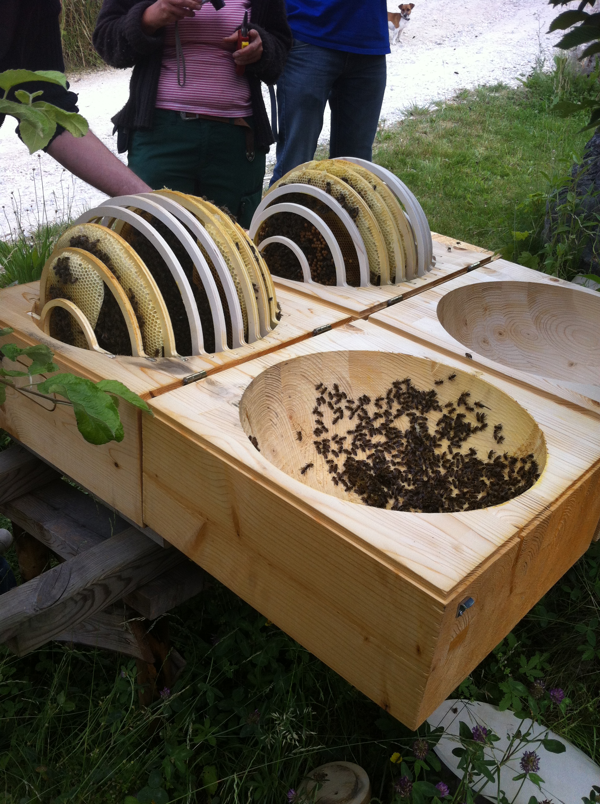 Die Selbstversorger-Akademie beginnt unter dem fast antiken Dachgebälk der ehemaligen Scheune mit einer Einführung in die Permakultur, einer Art ethischem Gärtnern mit Blick auf das große Ganze im Zusammensein von Natur, Tier und Mensch. Ich bin begeistert davon, wie man seinen Landsitz (wenn man einen hat) am schlausten aufteilt, Wasser- und Energieverbrauch gewitzt einplant. Was es alles gibt! Man stelle sich vor: einen Hühnertracktor – ein bewegbares Hühnerhaus, das man immer dort hinschiebt, wo ein neues Gemüsebeet entstehen soll (die Hühner scharren den Boden auf, entfernen die Grasnarbe und düngen gleichzeitig).