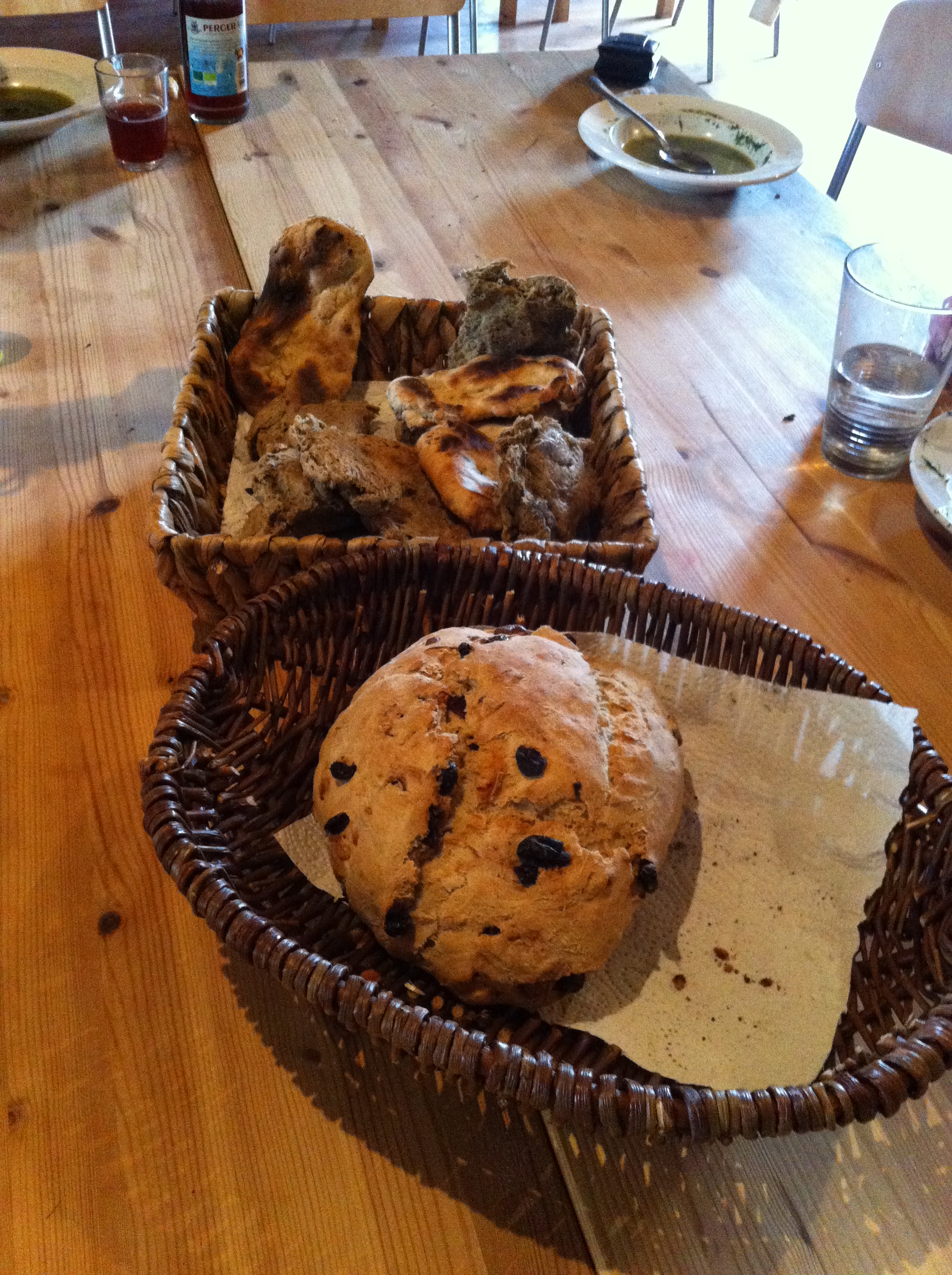 Herjeh, und rechnen muss man können: Wieviel Prozent Überfettungswert, Tabellen für bestimmte Öle nachschlagen, etc. Immerhin, die Zahncreme schmeckt schon mal gut. Zur Entspannung gibt es Brot mit sebstgemachter Hefe (Rosinen & Honig machen das für uns) aus dem Lehmbackofen. Lecker süß und ungeahnt knusprig.