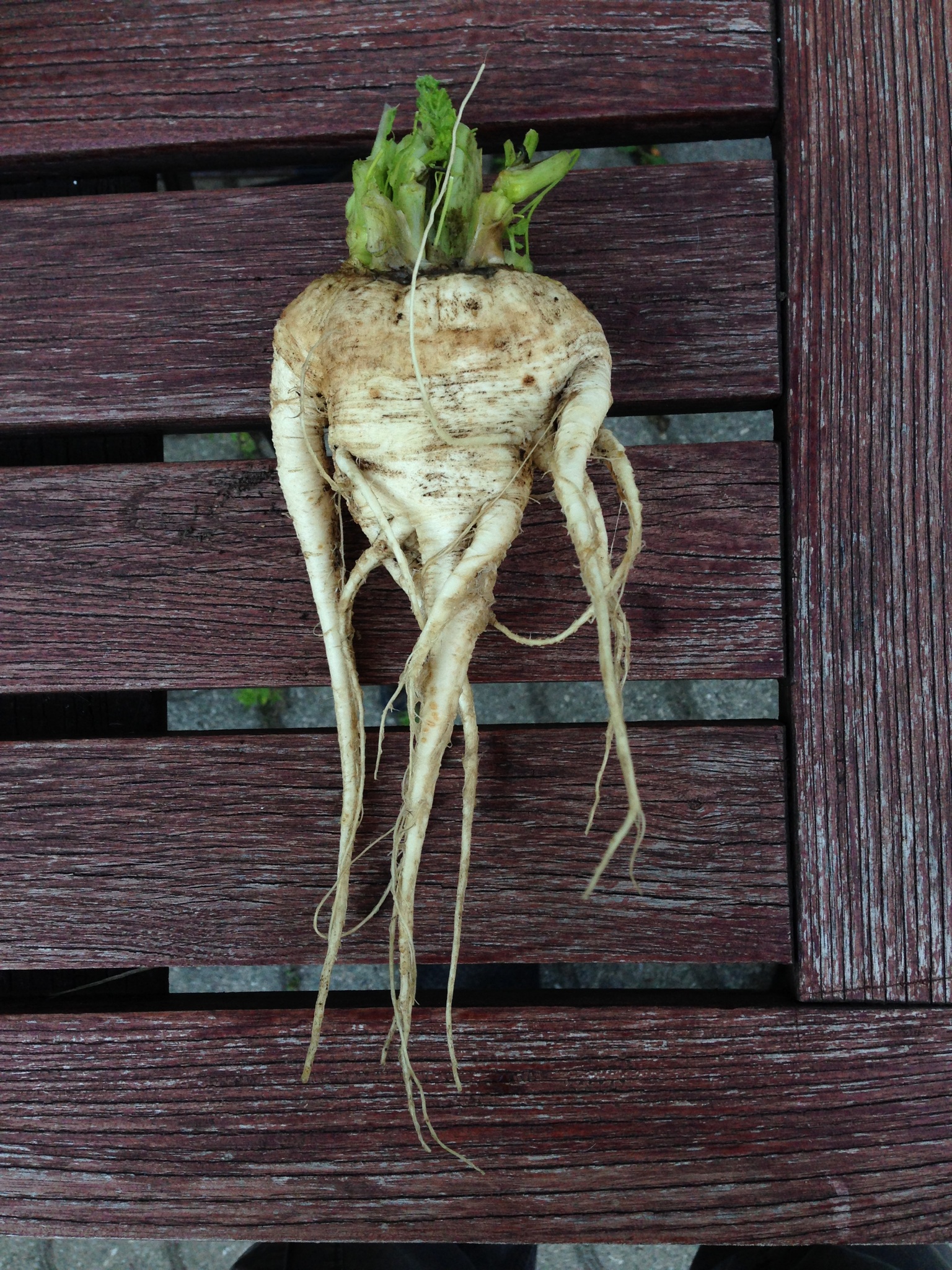 Unser gesamter Kohlrabi-Bestand hat also auch keine Küche von innen gesehen – dafür aber die Teltower kleinen Rübchen und die Rote Beete. Beides lecker übrigens dünn gehobelt mit Öl und Gewürzen im Ofen… Ich verstehe jetzt auch besser, warum heute bei der Sortenanerkennung so sehr auf Gleichförmigkeit geachtet wird ( auch wenn ich nicht dafür bin). Die alten Rübensorten wachsen manchmal verzwickt kompliziert und das Putzen dauert länger. Dafür hat jede Rübe eine Persönlichkeit: