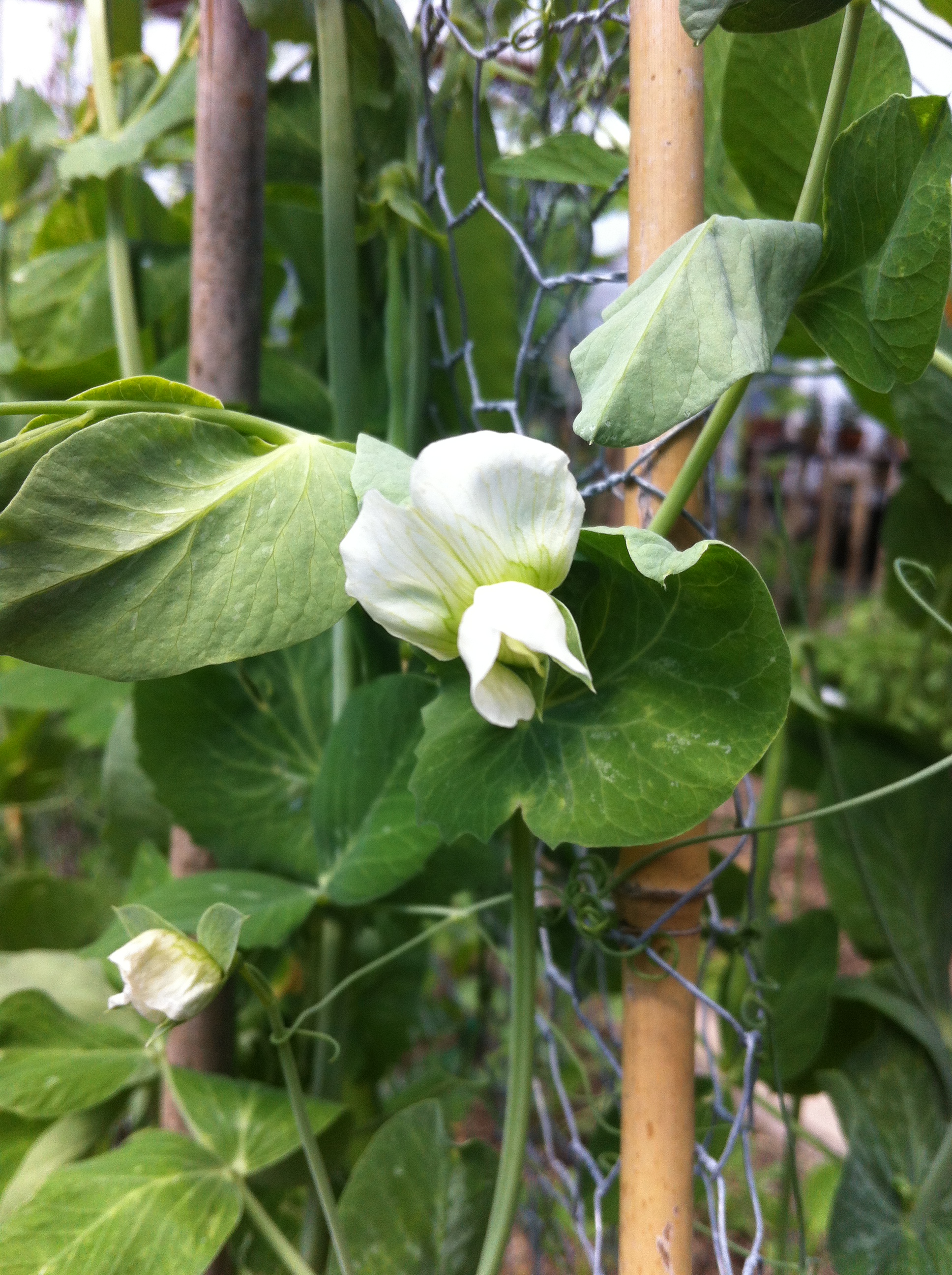 Neugierig begutachten wir Beet für Beet und landen bei den Erbsen, die schon üppig den 4 m langen und 1 1/2 m hohen Zaun beranken. Wir schauen uns an und lesen gegenseitig in unseren Gesichtern die gleichen Fragen „Sind die fertig? Kann man die jetzt essen?“. Knack, die erste Hülle ist aufgebrochen und die grünen Perlen liegen saftig glänzend und prall in unseren Händen. Knack, unsere Zähne beißen sich in die kleinen Wunderkugeln der Natur, die Mund und Geist mit einer noch nie gekannten, zarten Frische berauschen. Wir können nicht aufhören zu Knabbern. Knack, die nächste Hülse springt auf. Knack, ah wie gut. Keine einzige Erbse wird es jeh bis in die Küche schaffen. Wir haben alle im Beet gegessen.