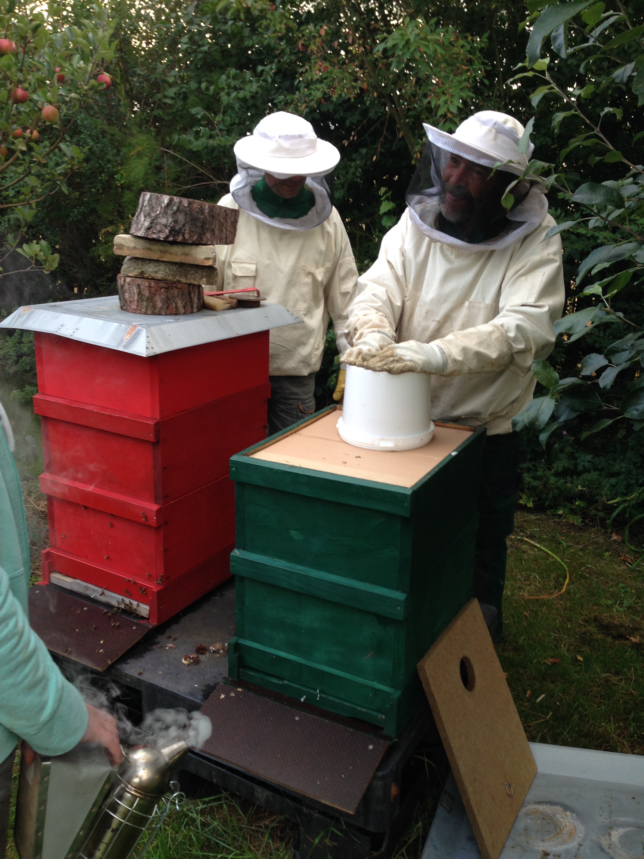 Franz füttert seine Bienenvölker mit Eimern von Zuckersirup. Es war kein gutes Jahr für die Bienen, die es schon schwer genug haben. Die Varroamilbe macht ihnen zu schaffen, die Bauern mähen alle Wiesenflächen für Viehfutter, das Wetter war zu trocken und der Pflanzennektar dadurch gering. Wir wissen zu wenig, manches ist auch kompliziert. Nur ganz naiv sind wir auch wieder nicht. Klar verdient jemand an den vielen Mittelchen zur Bekämpfung der Varroamilbe und verfolgt seine Interessen, genauso wie die meisten Bauern ihre Interessen verfolgen. Anscheinend schätzen nur wenige Menschen die Bienen so, wie sie es verdienen und lassen ein Stück Wiese für sie stehen oder pflanzen Bienenblumen in ihrem Garten.
