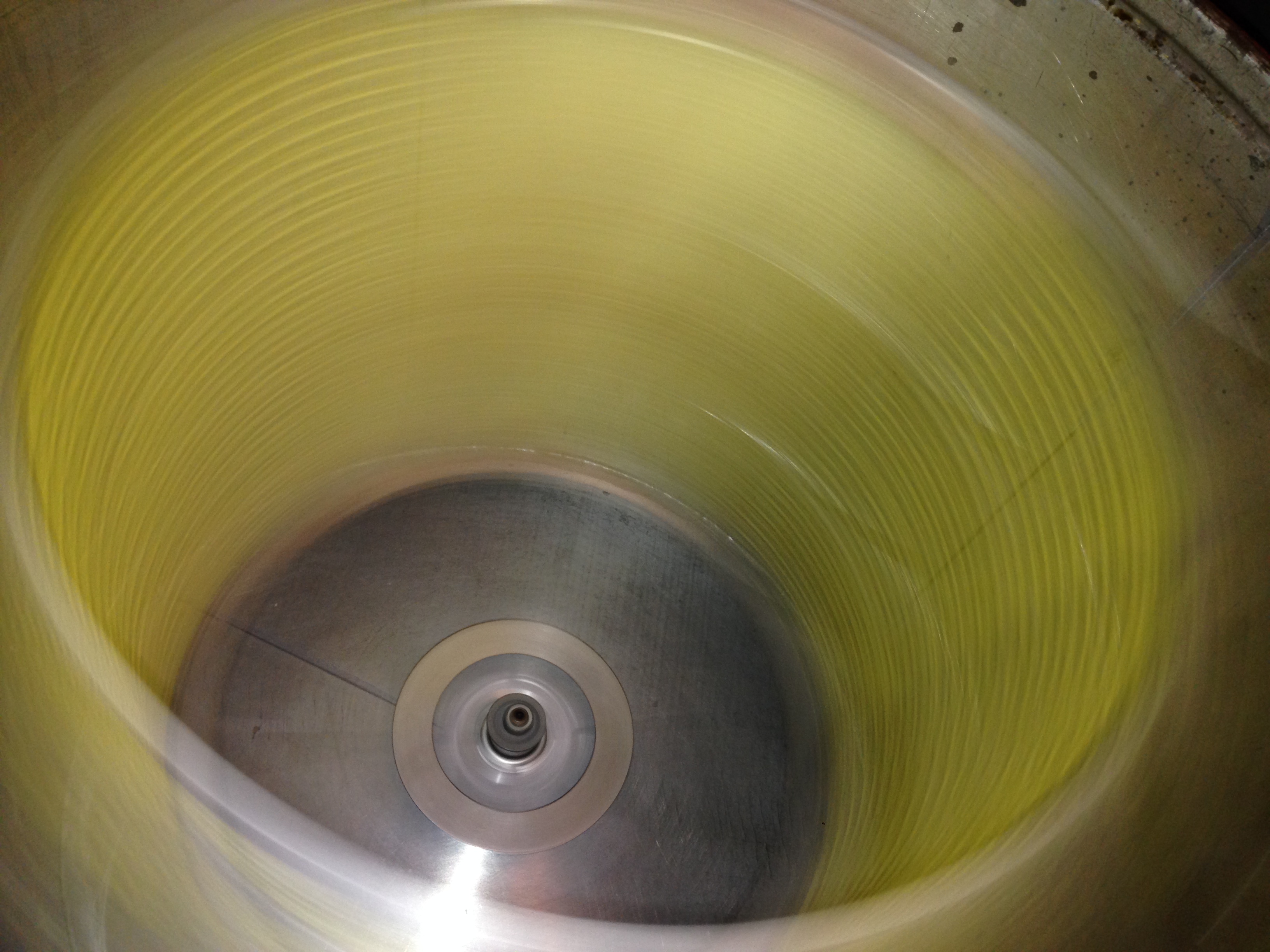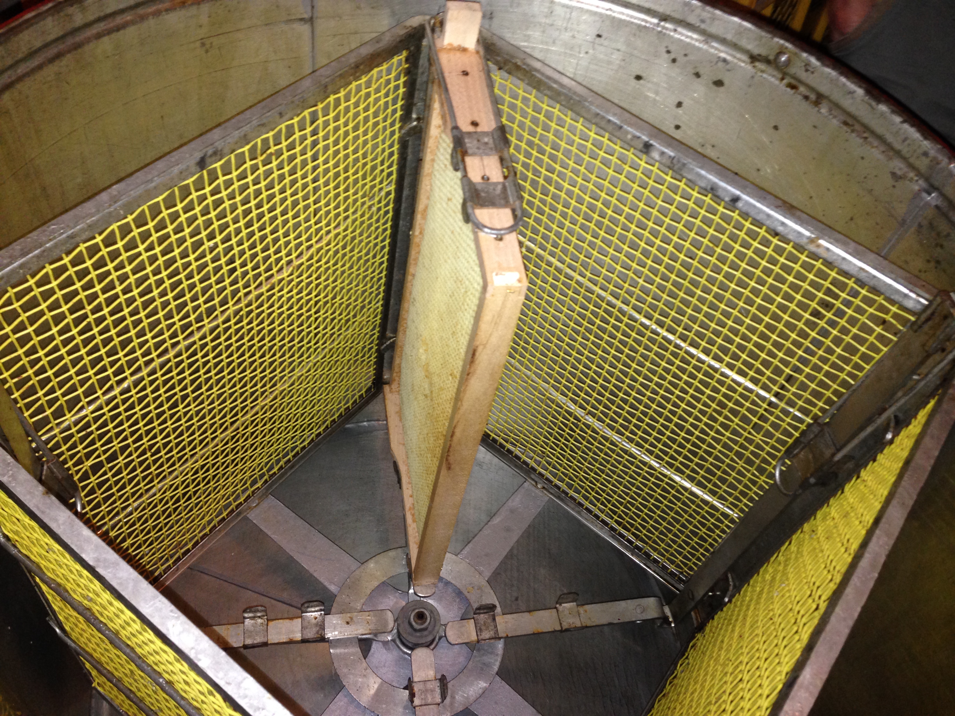 Franz zeigt uns noch die mechanische Honigschleuder, in die die Holzrahmen mit den Waben eingespannt und durch drehen mit der Hand vom Honig befreit werden. Fünf Minuten in die eine Richtung, fünf Minuten in die andere Richtung drehen – ganz schön anstrengend.
