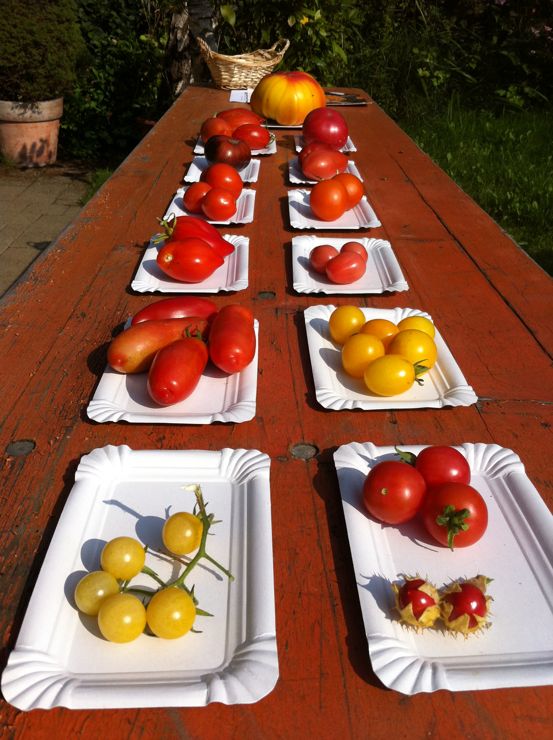 Weinverkostung, davon hat ja jeder schon mal gehört. Aber Tomatenverkostung? Und Karottenverkostung? Sowas kann passieren, wenn man einen Kurs zur Samengärtnerei besucht und sich vor einem Buffet mit rohen Karotten wiederfindet. Gelbe, orangene, violette, viele verschiende Sorten liegen ausgebreitet vor uns und von jeder zermalmen wir ein kleines Stückchen zwischen den Zähnen.