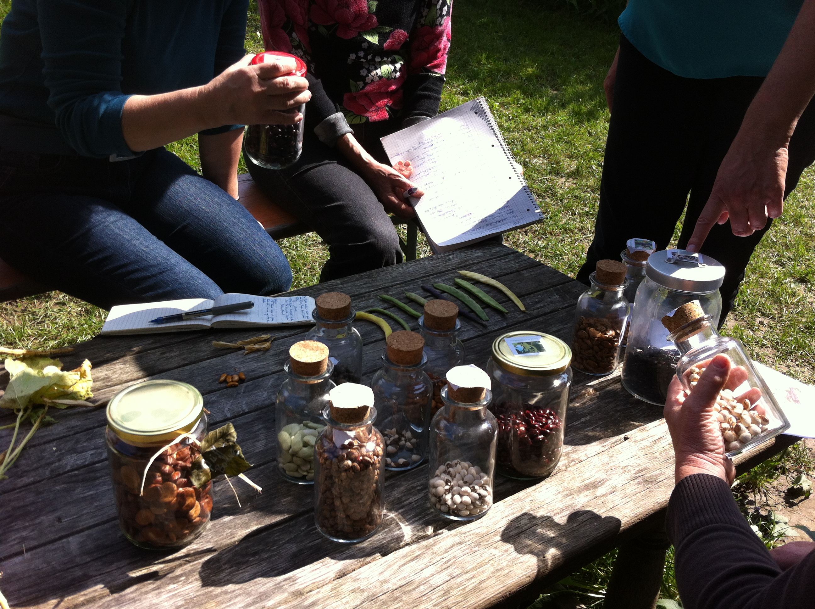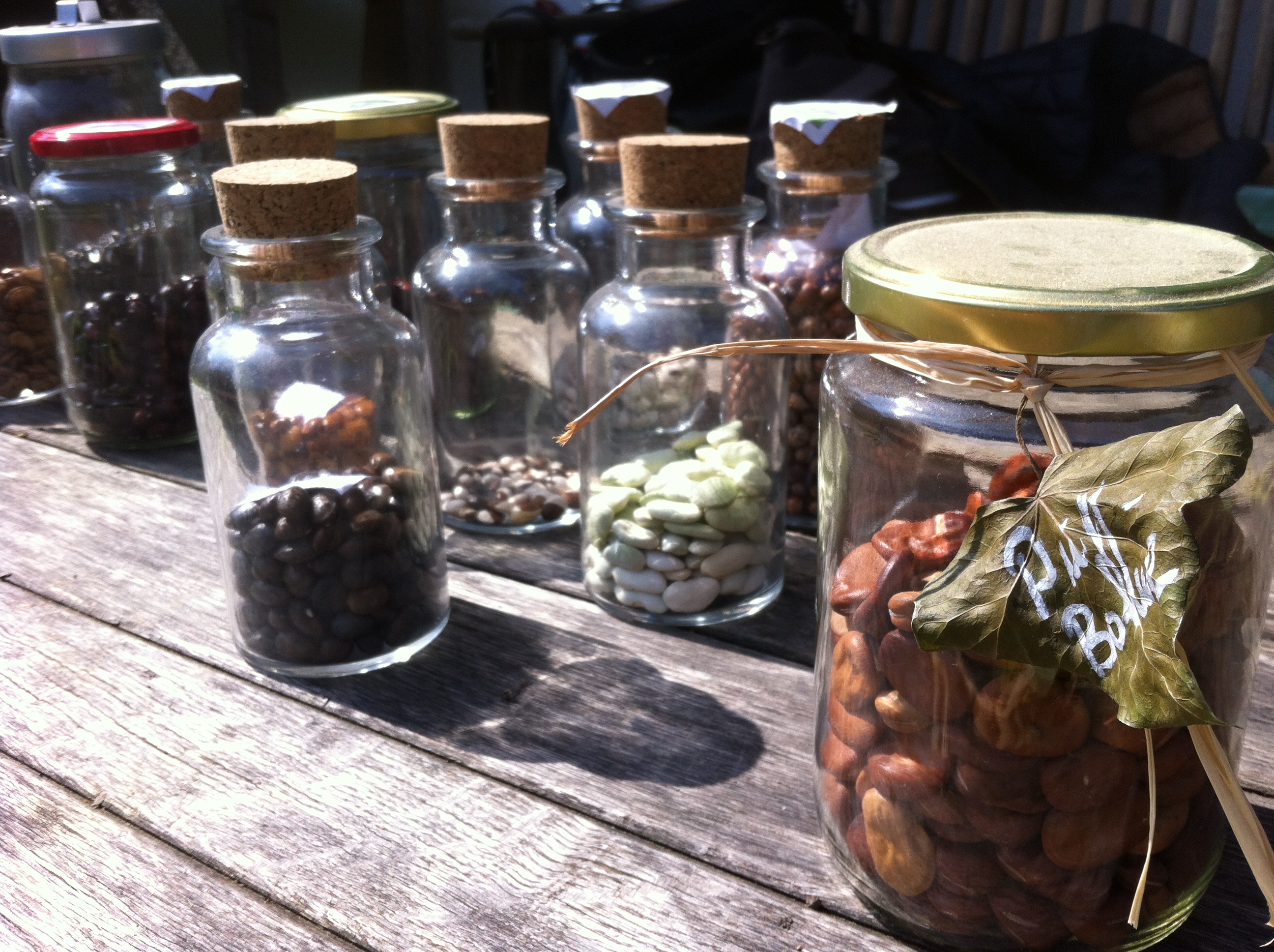 Danach widmen wir uns den Bohnen. Die sind, wie die Tomate, Selbstbefruchter. Andere Pflanzen brauchen Insekten zum befruchten, wie die Karotte, wieder andere nutzen den Wind, wie der Mais. Entsprechend muss man aufpassen, was in der Nähe des eigenen Gartens so wächst, damit sich keine fremden Pflanzen in die eigene Zuchtlinie einkreuzen. Mein Kopf ist bereits voll von interessanten Eindrücken und Informationen. Fasziniert wiege ich die Bohnensamen in den Händen. Besonders gefällt mir die dicke, braune Puffbohne, bzw. Saubohne – wegen ihres Eiweißgehalts das Soja unserer Omas sozusagen. Innerlich lächelnd erfinde ich (statt Tofu-Burger) den ersten Saubohnen-Burger und die erste Puffmilch. O jeh, ich glaube es ist Zeit, heim zu gehen und die letzten Sonnenstrahlen im eigenen Gemüsegarten zu genießen, bevor mein Hirn noch weitere Ideen ausspuckt.