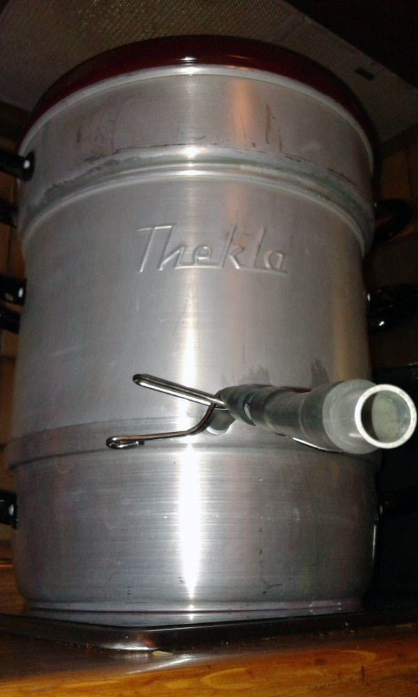 Wenigstens das Glücksgefühl, die Schlauchklemme zu öffnen und das Zwischenergebnis stundenlanger Arbeit, habe ich mir aus der Kindheit bis heute herüberretten können. Denn fast ein halbes Jahrhundert später wird bei uns auch mal wieder Apfelgelee gekocht. Ganz wie früher, ganz wie bei Muttern. Dazu verwende ich einen uralten Thekla-Entsafter, den mir vor Jahren eine Kollegin geschenkt hat. Die nämlich wollte den Topf, den ihre Mutter aussortiert hatte, gleich wieder loswerden. Dabei hatte das gute Stück weiland 67,50 DM gekostet, das Preisschild klebt noch immer auf dem Pappkarton. Alt, verbeult, mattes Aluminium, roter Deckel – so steht er auf dem Herd und wartet auf Apfel-Abfälle. Abfälle? Das bedarf einer Erklärung.