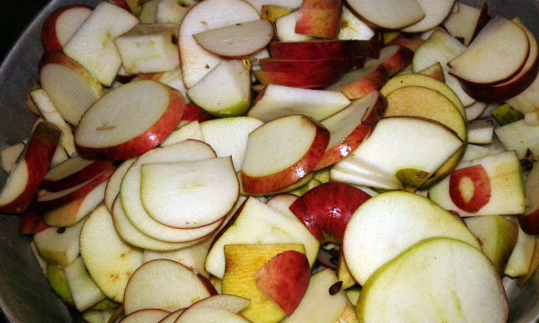 Wie früher bei meiner Mutter bekommen wir die Äpfel von unserem Nachbarn oder einem Verwandten meiner Frau geschenkt. Im letzteren Fall sind sie bereits geerntet, vorsortiert und relativ frei von Fleischeinlagen. Wir müssen sie nur, fertig in Stiegen verpackt, abholen kommen. Und so türmen sich vier Stiegen Äpfel Ende September vor unserem Haus. Die gilt es, zu Mus zu verarbeiten, denn Apfelmus wird gern und viel in unserer Familie gegessen. Während meine Frau also Äpfel schält und die Kerngehäuse herausholt, die Apfelviertel einkocht, bis sie breiig werden, sammle ich Schalen und Kerngehäuse im Entsafter und zerschnibble schon mal die kleinsten Äpfel, die zu schälen zu aufwendig sind. Der Entsafter ist vom Apfel-Abfall schnell gefüllt und dann geht es los. Entsaften ist kein Hexenwerk. Die Arbeit geht fast von allein.