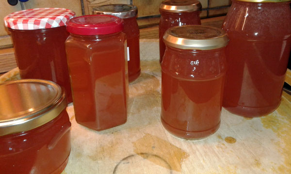 Natürlich weiß ich nicht, ob die Energiebilanz oder die Kosten für die selbstgemachten Marmeladen, das Mus und das Gelee günstiger ausfallen, als wenn ich Apfelgelee oder –mus im Supermarkt kaufe. Aber eines weiß ich: Das Selbstgemachte schmeckt viel besser. Denn ich schmecke die Arbeit und die Freude beim Einkochen bei jedem Biss heraus. Und ich weiß: Die Äpfel sind garantiert ungespritzt. Und davon mal ganz abgesehen: Weg mussten die sowieso. Die kann man doch nicht einfach auf der Wiese oder am Baum verrotten lassen. Im nächsten Jahr lasse ich mir gern wieder Obst schenken oder klettere zum Pflücken über die Mauer in Nachbars Garten. Der ist nämlich auch froh, wenn er das Zeug los wird, weil er kaum noch weiß, wohin damit…