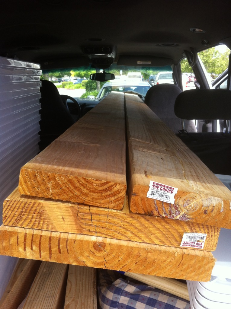 Wir entscheiden uns für Douglasie, eine stabile Holzart, die hier in Kalifornien heimisch ist. Die Maße für unser Hochbeet ergeben sich aus mehreren Faktoren: Möglichst viel Anbaufläche, die von allen Seiten gut zu bearbeiten ist und genau so groß, dass das Material noch in unser Auto passt.