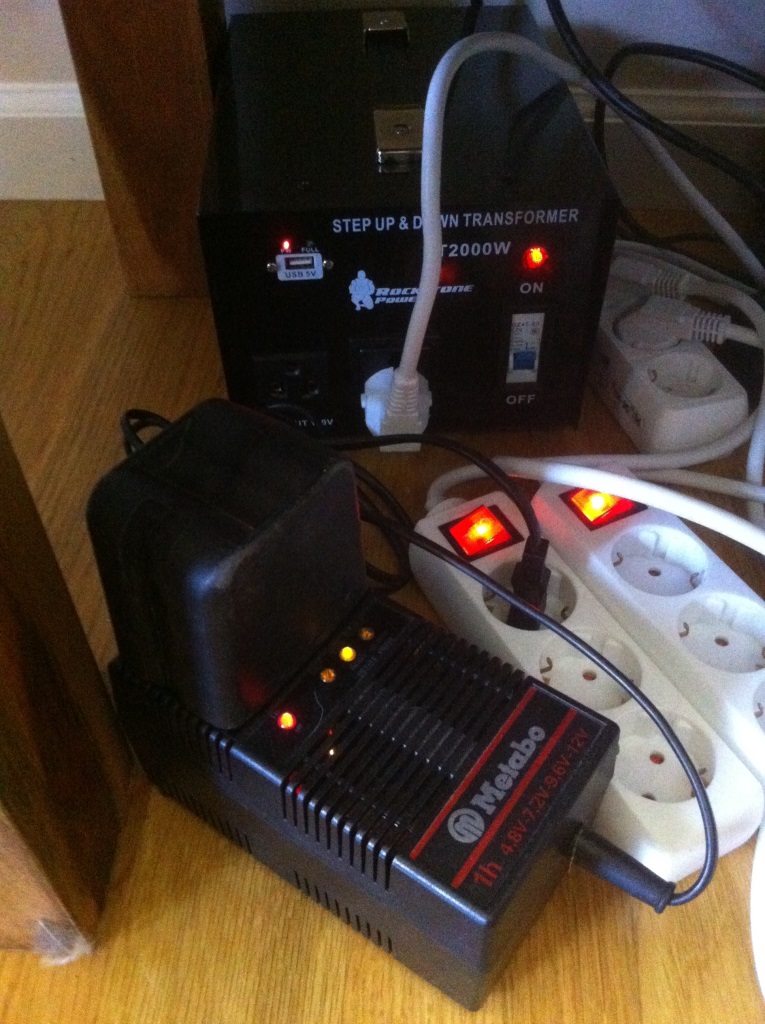 Natürlich versagt prompt der Akkuschrauber und muss mit dem Transformator aufgeladen werden, da in den USA die Stromspannung nur 110 Volt beträgt, unsere deutschen Werkzeuge aber 220 Volt gewöhnt sind.