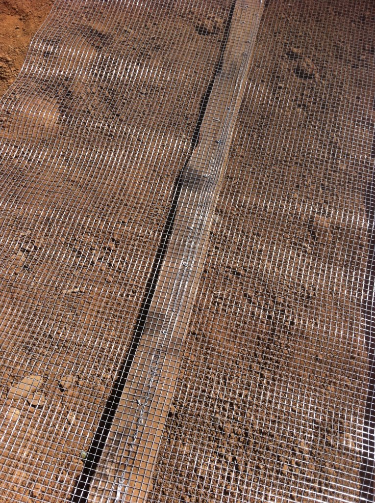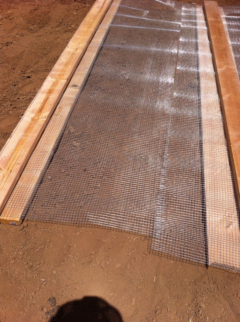 Währenddessen kümmern wir uns um den Maschendrahtboden. Wir breiten zwei Maschendraht-Rollen auf dem Boden aus und verbinden beide miteinander – indem wir mit einem Stück Draht beide Teile zusammennähen. Das ist nicht professionell, aber das hat man davon, wenn man folgendes nicht bedenkt:
