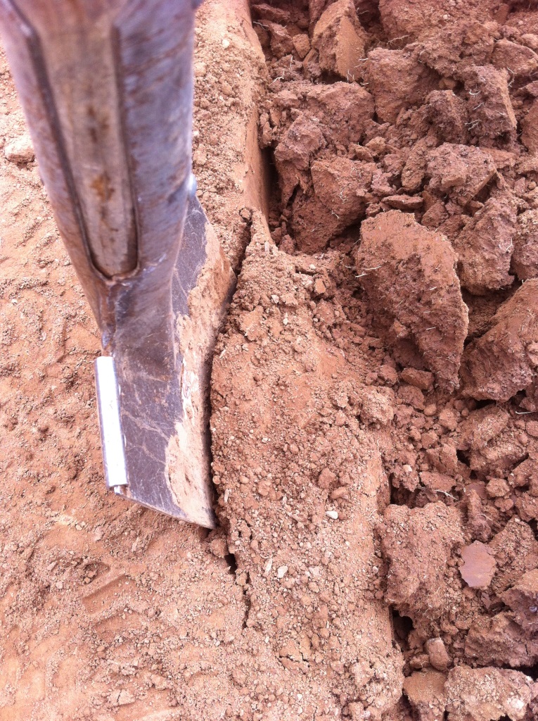 Das Gute an einem selbstgebauten Hochbeet ist, dass es genug Arbeit gibt, mit der man das angestaute „Och-was-ist-jetzt-schon-wieder-schief-gelaufen“-Gefühl einfach wegschaufeln kann. In unserem Fall bedeutet das, den Boden umzugraben, auf dem das Hochbeet stehen soll. In der Hoffnung, den Wurzeln noch einen Tick mehr Platz zu geben. Blöd nur, dass sich unser steinharter Lehmboden nur wenige Zentimeter abtrotzen lässt.