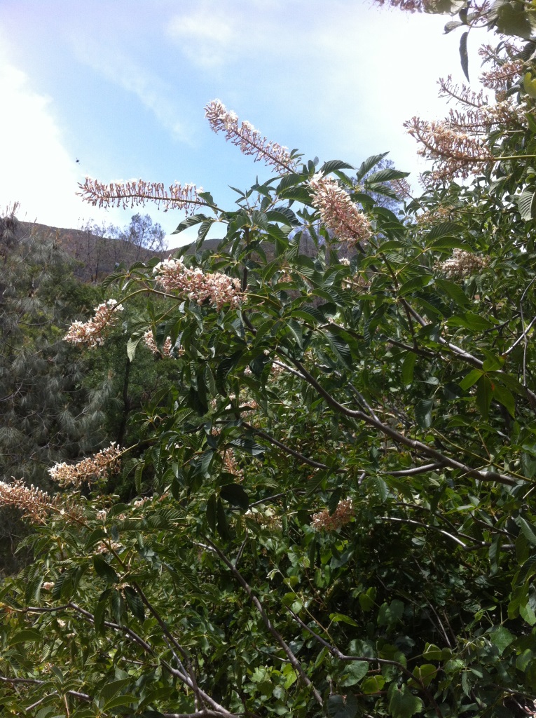 Freudig renne ich mit offenen Armen auf ihn zu. Ein bekanntes Pflanzengesicht, endlich. Die üppigen Blüten des Hollerbuschs lachen mich vom Wegesrand an und winken mir im Wind zu. Ach! Heimattrunken senke ich meine Nase in seinen cremefarbenen Sonnenstaub. Soll sein lieblicher Geruch mich mitnehmen in das Bekannte und Wohlvertraute, mich forttragen. Aber nein. Erschrocken wende ich mich ab. Hallo? Alter Freund, bist Du es wirklich? Du riechst so herb und fremd. Da kann man nichts machen. Wenn der Holunder plötzlich anders duftet, ist man auf der anderen Seite des Ozeans. Es wird Zeit, die kalifornische Pflanzenwelt kennen zu lernen.