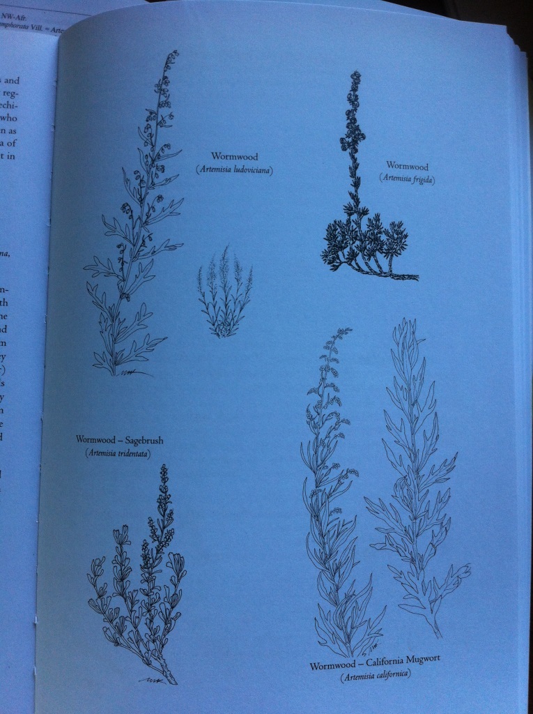 Der Duft ist feiner und spezieller als der des deutschen Beifuss. Schon die Indianer haben ihn als Medizin und Räucherwerk verwendet. Als ich in Michael Moores Buch „Medicinal Plants of the Mountain West“ nachlese, entdecke ich, dass es gleich mehrere Arten Beifuss in den USA gibt (siehe Foto). Eine davon habe ich in der Natur bereits entdeckt, den Sagebrush, auch Wüstenbeifuss (lat. Artemisia tridentata) genannt.
