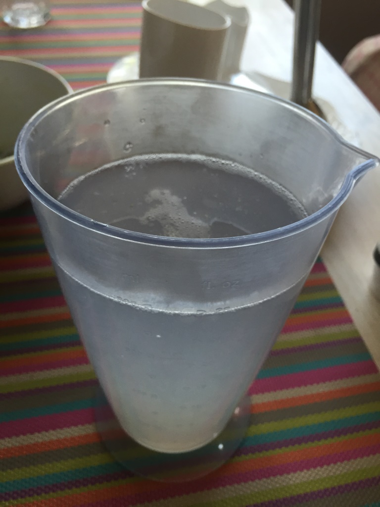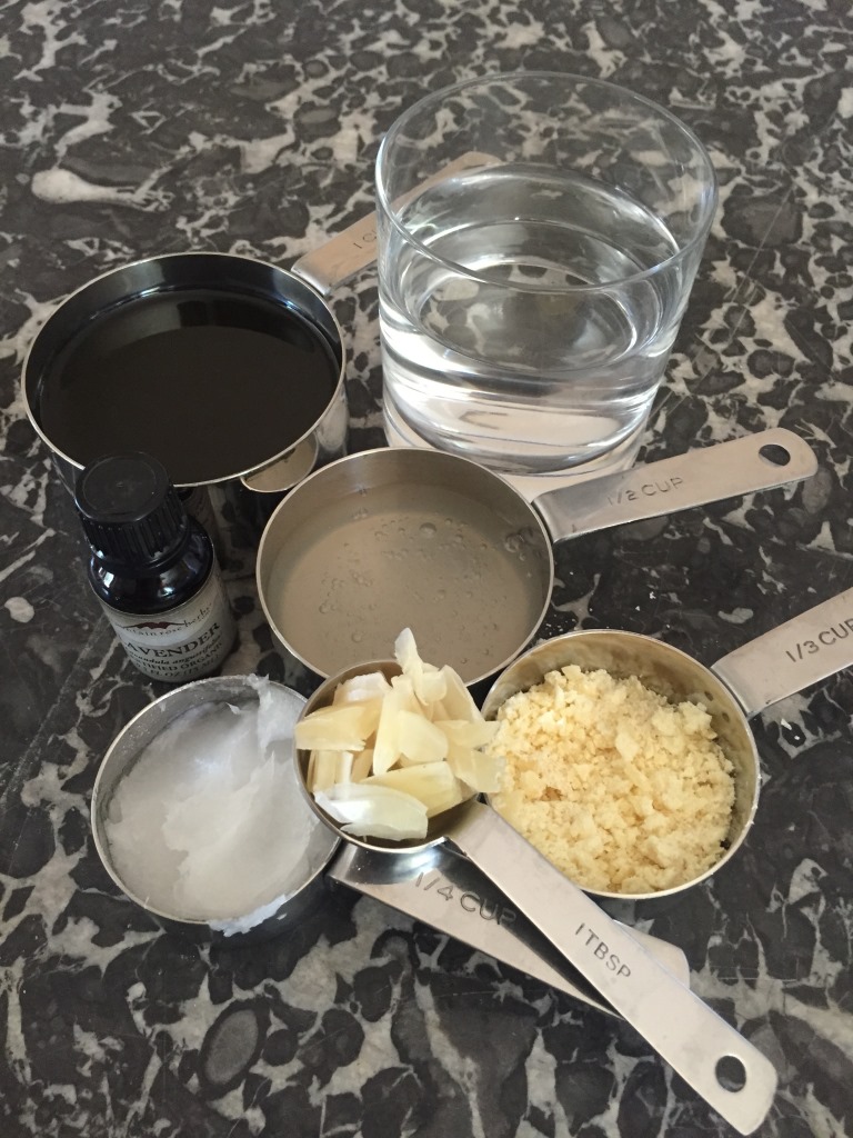 Die wasserhaltigen Zutaten (Aloe Vera, Destilliertes Wasser, Ätherisches Lavendel-Öl) müssen seperat mit dem Mixer vermischt werden.