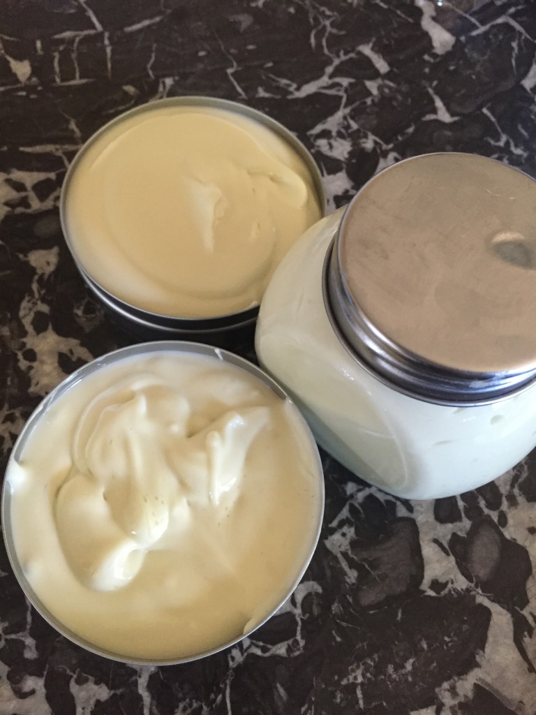 Wir seihen das Öl ab und legen das Cremerezept aus Rosemary Gladstar’s „Medicinal Herbs. A Beginner’s Guide“ bereit. Wir machen „Rosemary’s berühmte Gesichtscreme“ – Feuchtigkeit spendend und, so wird versprochen, göttlich gut für die reife Haut. Wir besitzen eine solche, da machen wir uns nichts vor. Wenigstens soll die Haut reif bleiben und nicht alt werden.